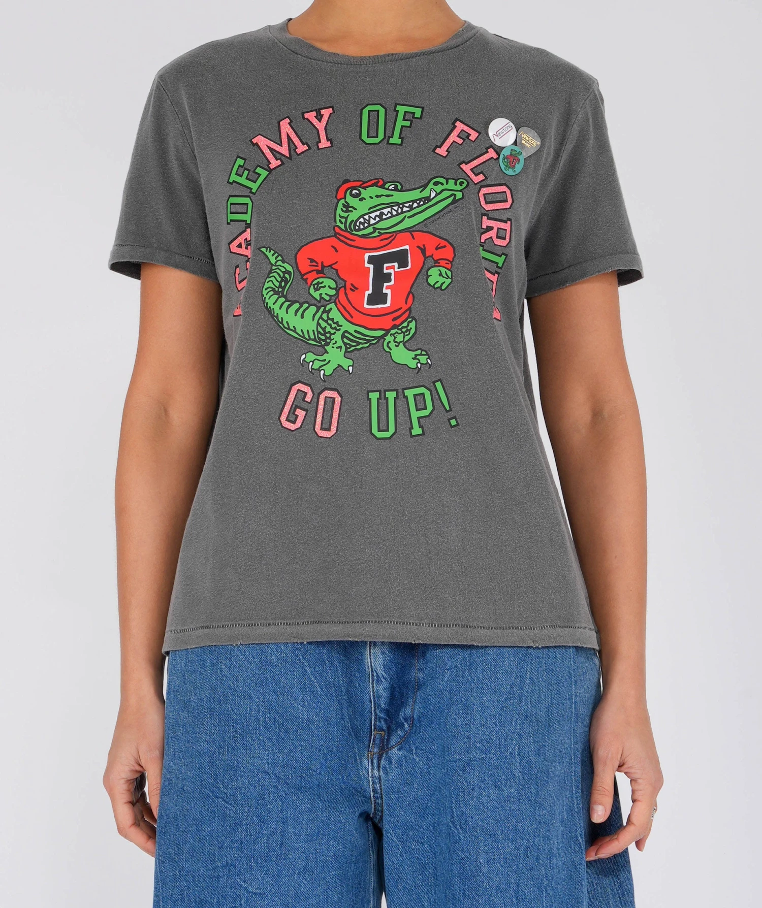 - Worn collar, sleeves and hem